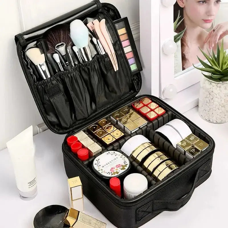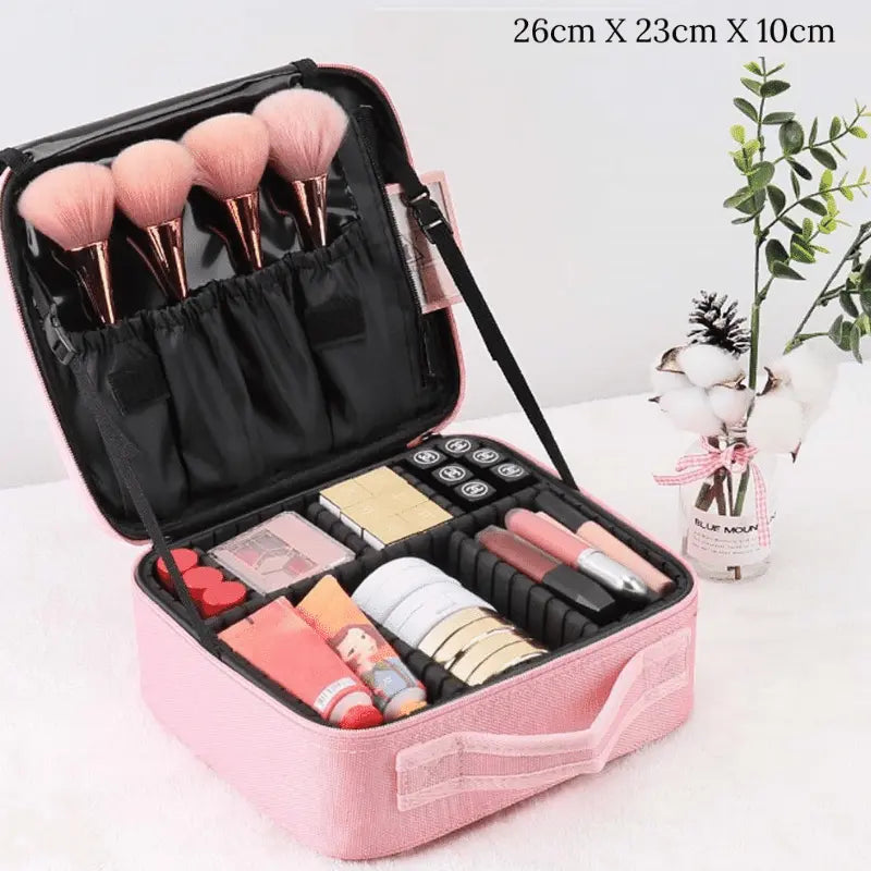 Taşınabilir ve şık tasarımıyla bu makyaj çantası, seyahatlerinizde veya günlük kullanımda hayatınızı kolaylaştırır. İçindeki bölmeler sayesinde makyaj malzemelerinizi düzenli bir şekilde saklayabilir ve ihtiyaç duyduğunuz her an kolayca erişebilirsiniz. Oynar başlıkları sayesinde çok düzenli ve modifikasyon yapabileceğiniz bir alan sunmaktadır.