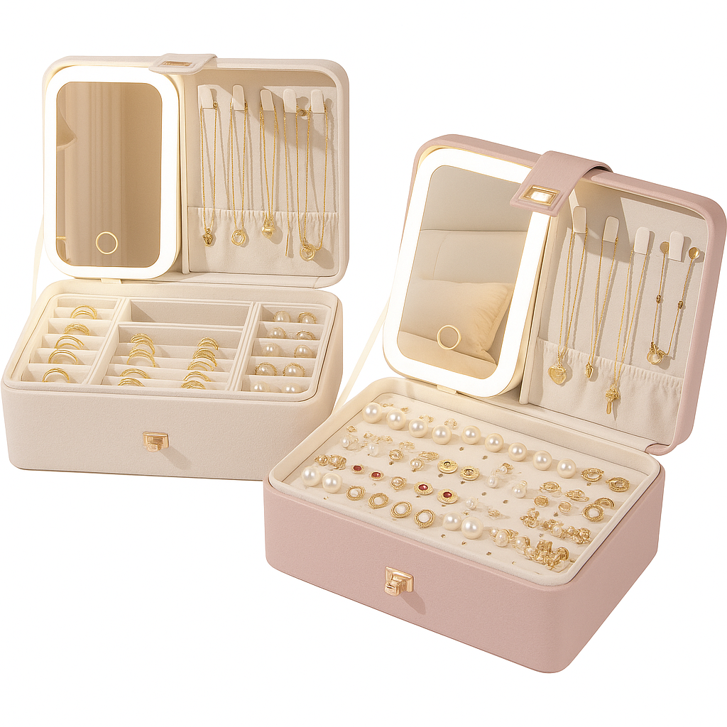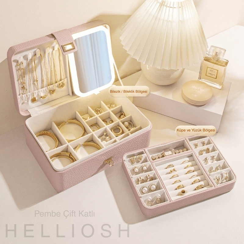 Işıklı Takı Kutusu, şıklık ve fonksiyonelliği bir arada sunan, takılarınızı düzenli ve güvenli şekilde saklamanızı sağlayan Premium bir organizerdir. Özel LED aydınlatmalı kapağı sayesinde, karanlık ortamlarda bile takılarınızı rahatça seçebilir, makyajınızı ve aksesuarlarınızı kolayca kombinleyebilirsiniz.