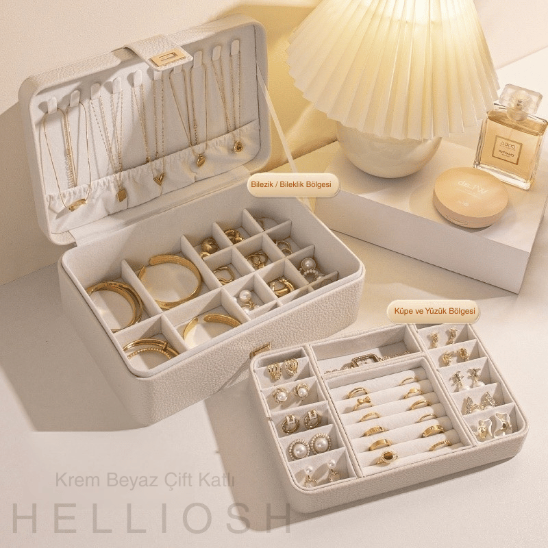 Bölmeler: Yüzük, küpe, bileklik, kolye ve saatler için ayrı saklama alanları