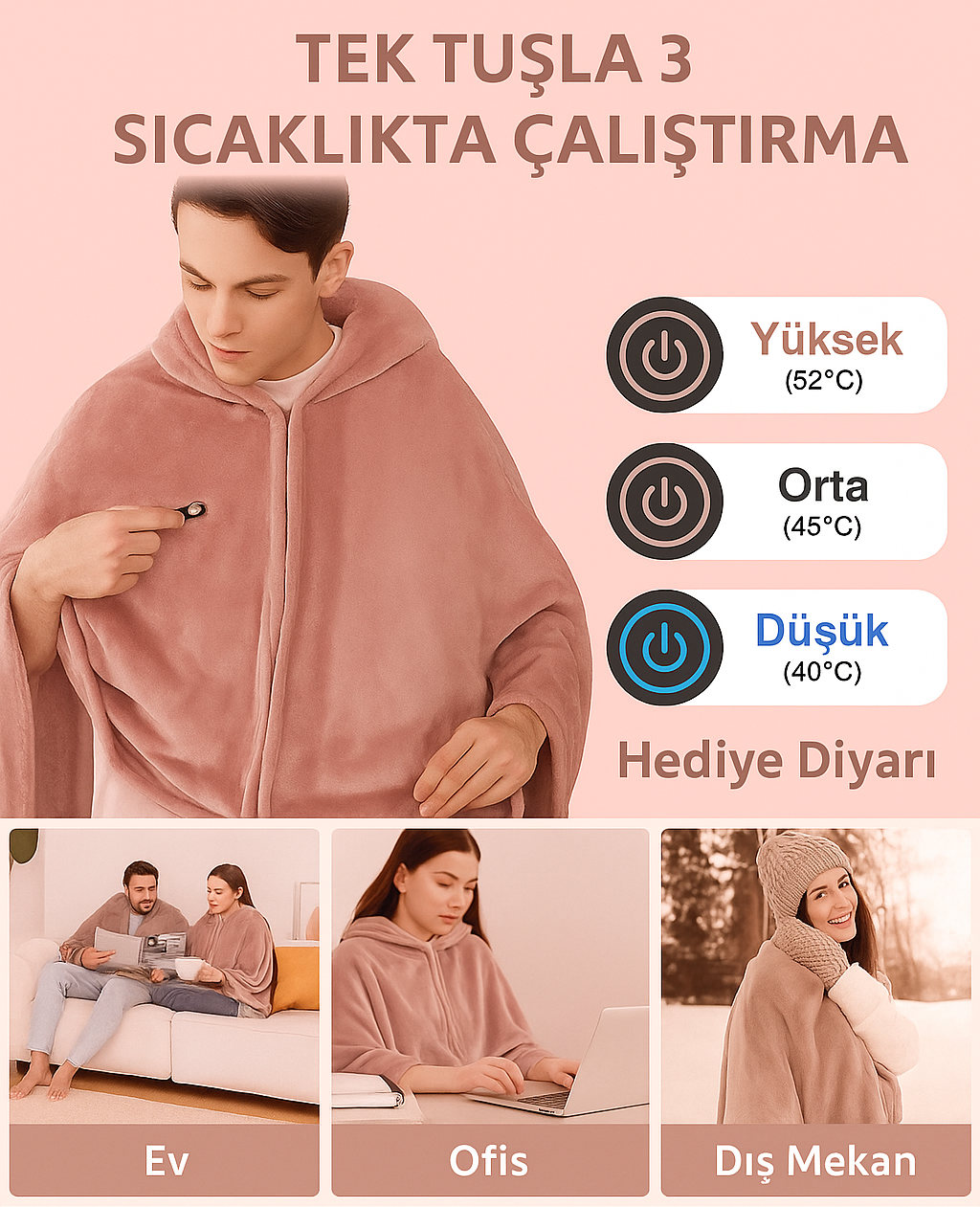İster evde film keyfi, ister kış yürüyüşü... Isıtıcı Battaniye, sevgilini sıcacık sararak her anı daha romantik kılar.