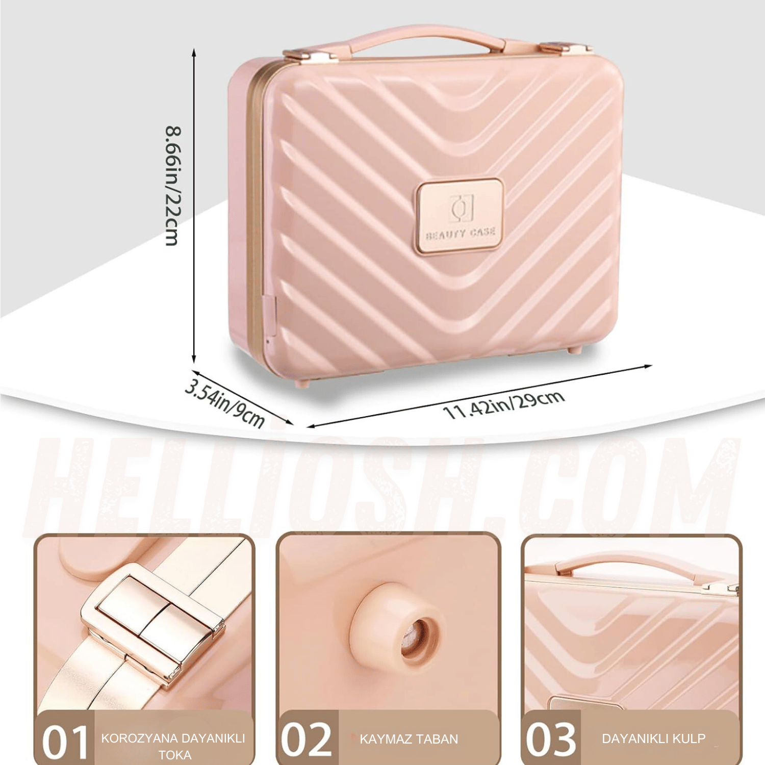 Kompakt tasarımı sayesinde hem evde hem de seyahatlerinizde yanınızda taşıyabileceğiniz bu makyaj çantası, rujlarınızdan fırçalarınıza kadar tüm ürünlerinizi güvenle saklar ve düzenli tutar. Modern tasarımıyla şıklığı ve işlevselliği bir araya getiriyor.